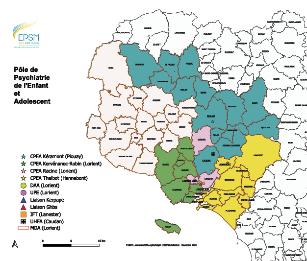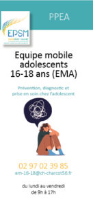 Le dispositif ambulatoire adolescent associe Hôpital De Jour (HDJ), Centre d’Accueil Thérapeutique à Temps Partiel (CATTP), Centre Medico-Psychologique (CMP), Équipe mobile, Équipe de pédopsychiatrie de liaison (Kerpape et pédiatrie GHBS) et maison des adolescents.